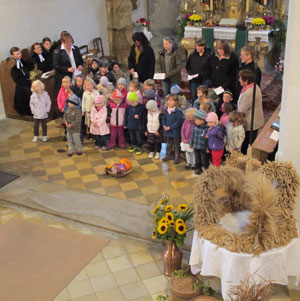 Am Erntedanksonntag feierten wir in der herrlich geschmückten Kirche einen Festgottesdienst mit den Kindern und dem Team der Kindertagestätte "Unterm Regenbogen", der Arche Musica und dem
